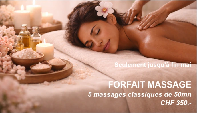 5 massages classiques de 50mn chacun pour seulement 350.-.